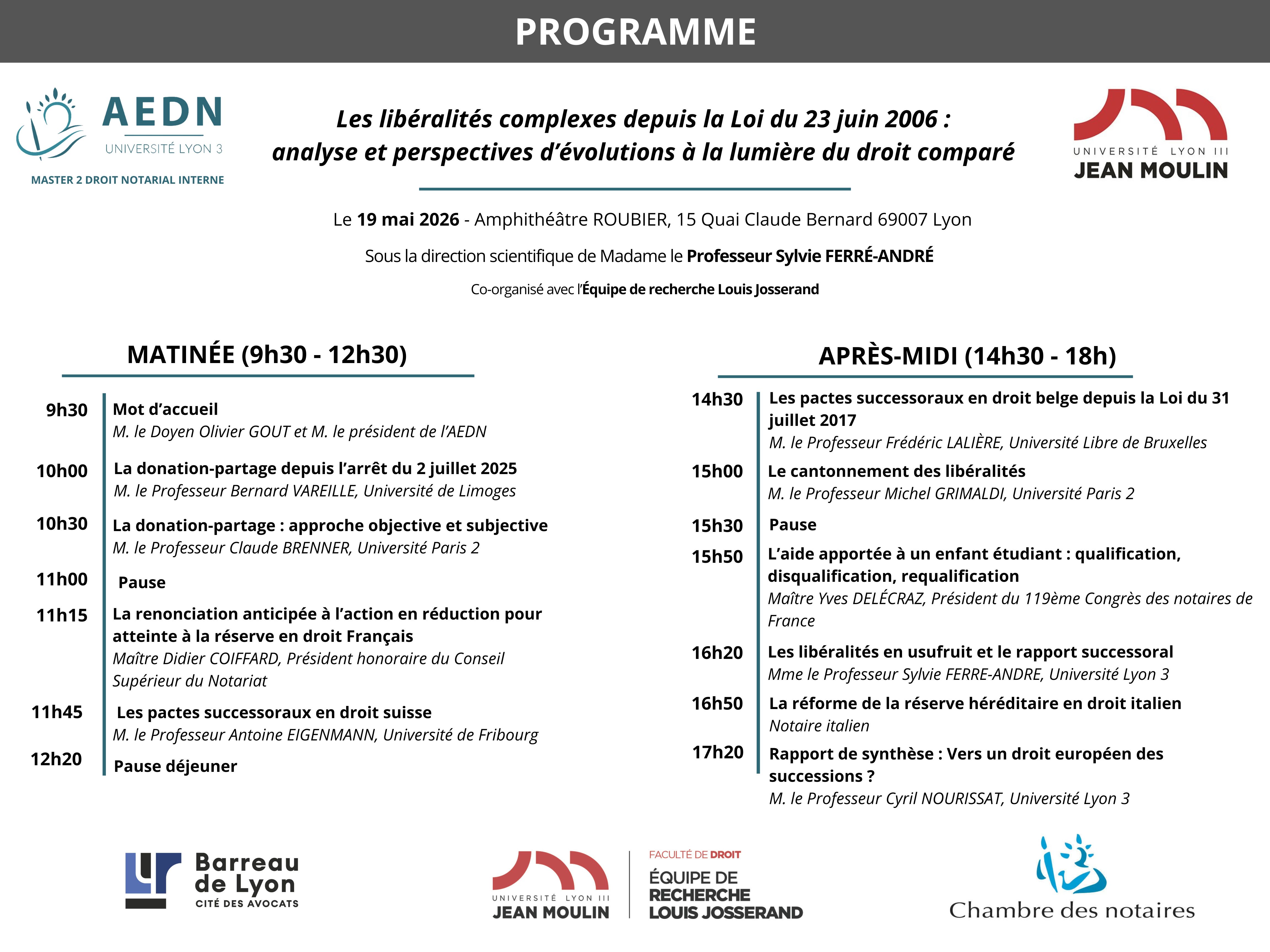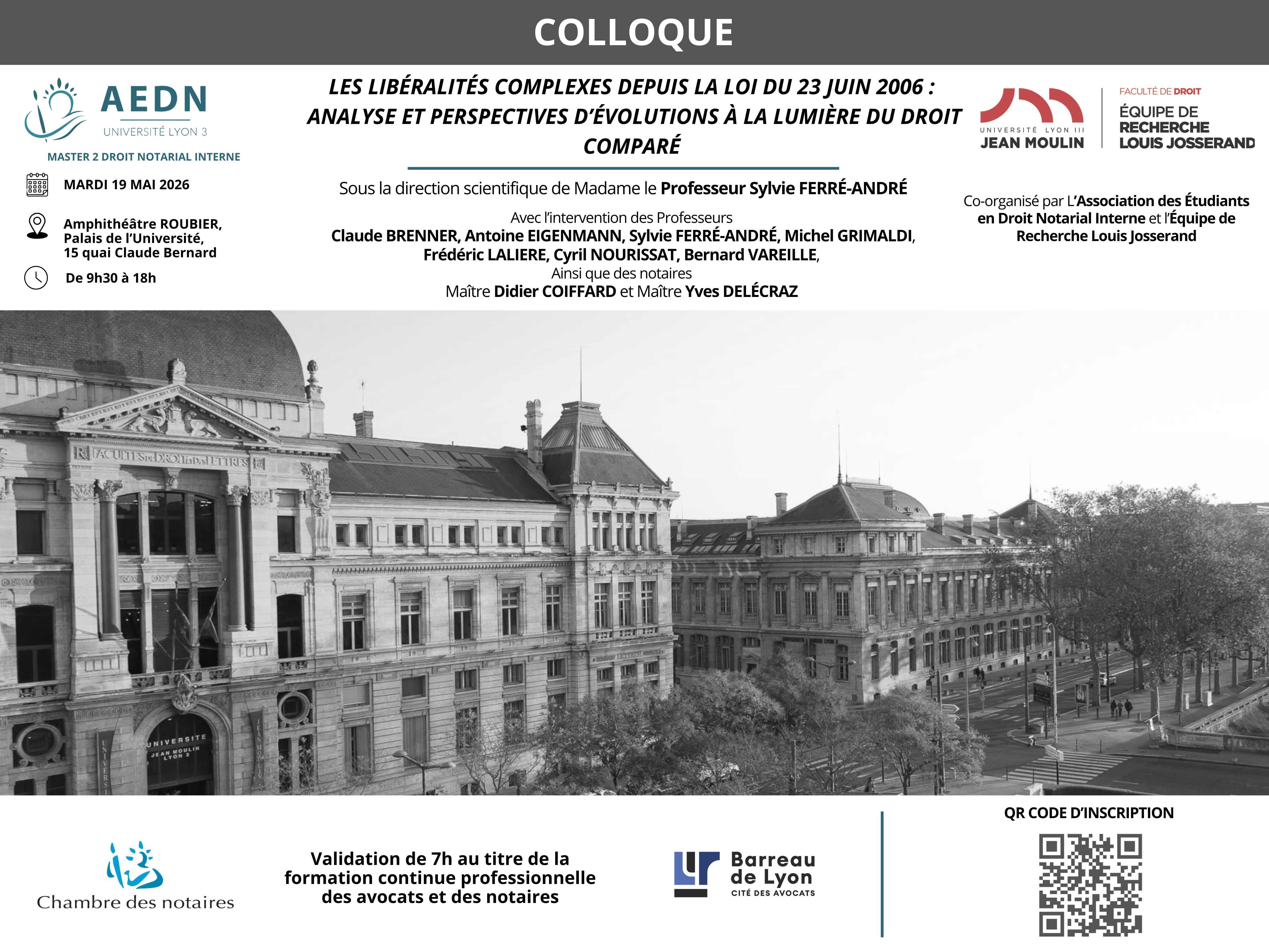 L’AEDN a été heureuse d’organiser le 19 mai 2026 la seconde édition des Colloques lyonnais du Notariat, qui a trait l’analyse des libéralités complexes depuis 20 ans, sous l’égide de la loi du 23 juin 2006 .